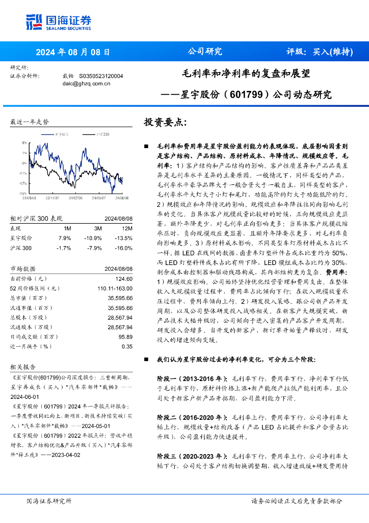 国海证券:星宇股份(601799)-公司动态研究:毛利率和净利率的复盘和展望.pdf