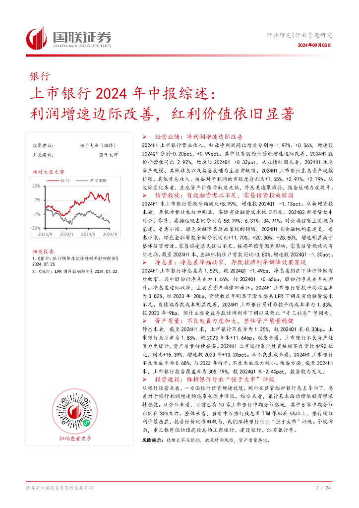 国联证券:上市银行2024年中报综述:利润增速边际改善,红利价值依旧显著.pdf