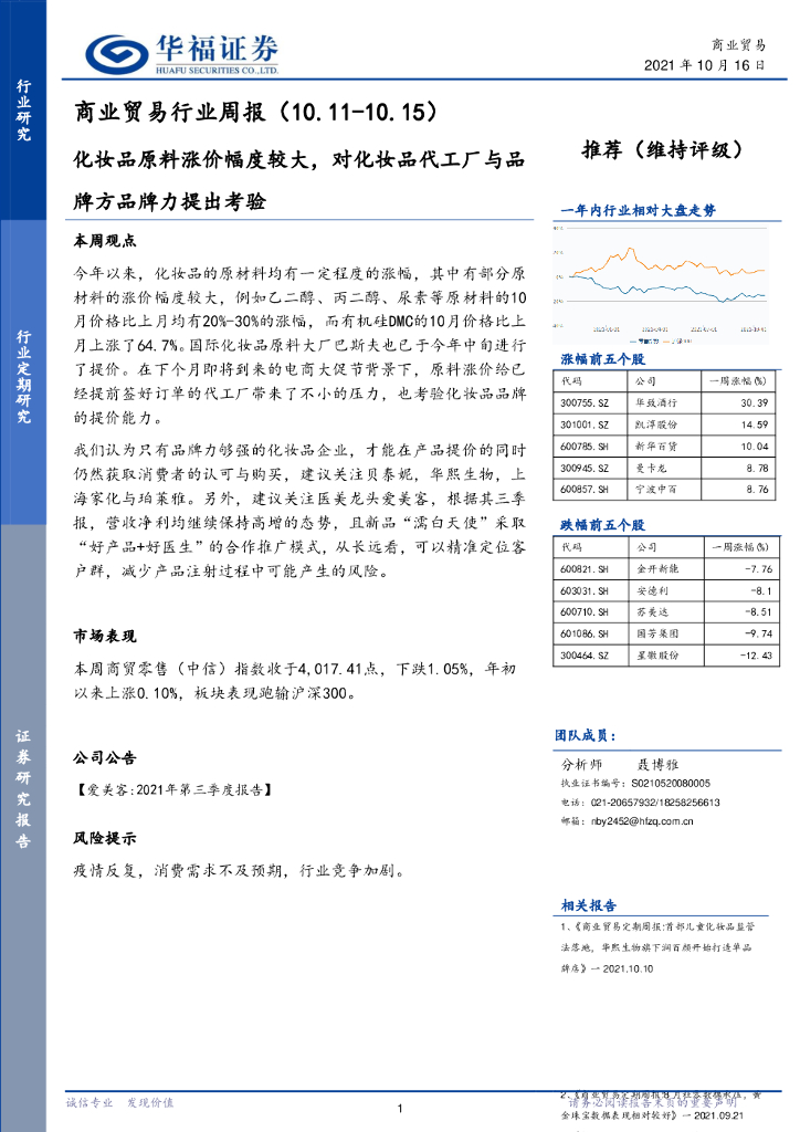 华福证券:商业贸易行业周报:化妆品原料涨价幅度较大,对化妆品代工厂与品牌方品牌力提出考验.pdf