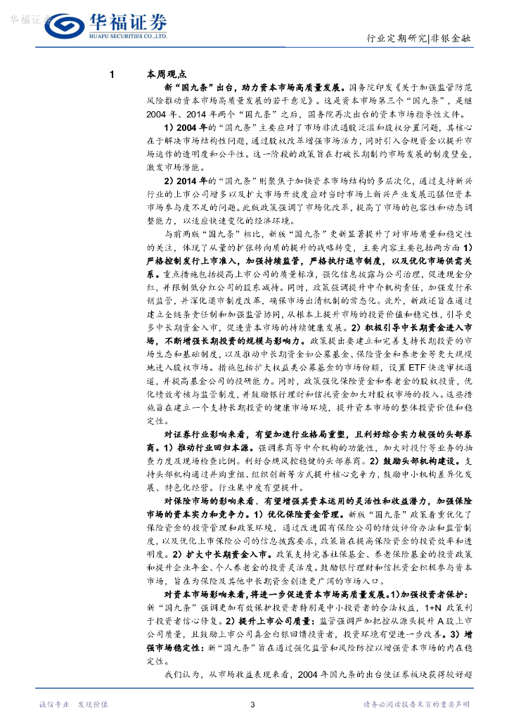 华福证券:非银周报:新“国九条”助力资本市场回暖,板块估值将持续修复.pdf