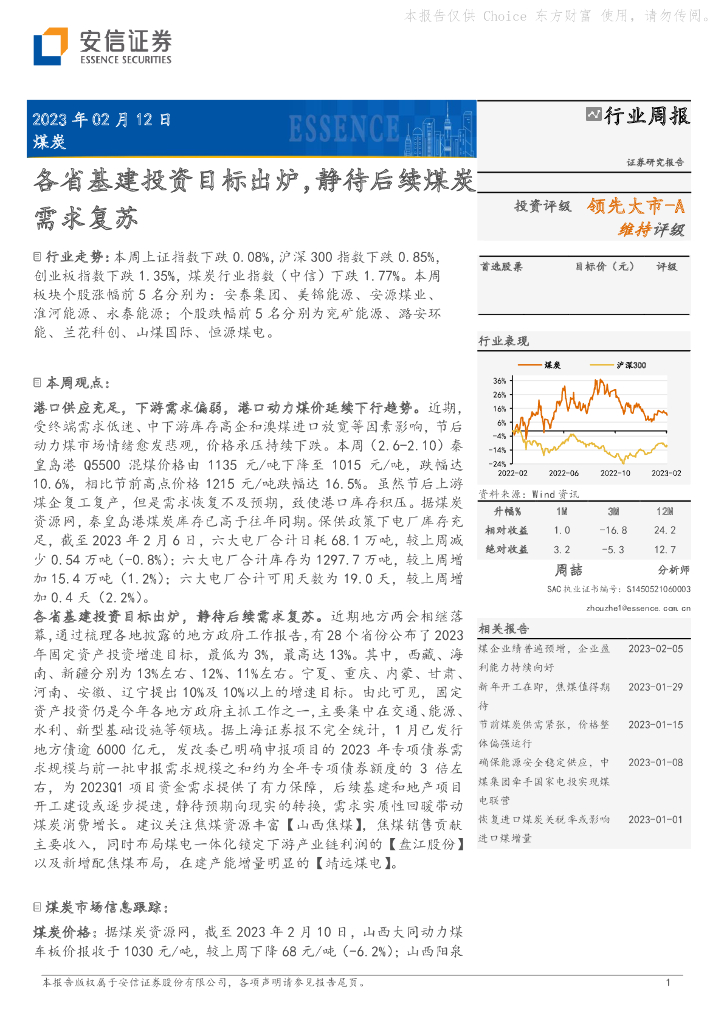 安信证券:煤炭行业周报:各省基建投资目标出炉,静待后续煤炭需求复苏.pdf