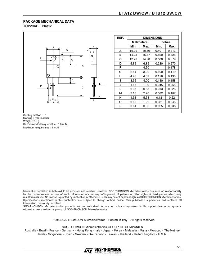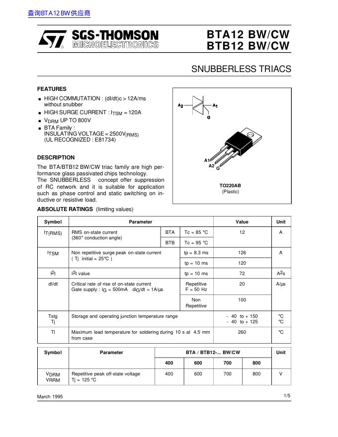 ST BTA12 BW /CW,BTB12 BW /CW 数据手册.pdf