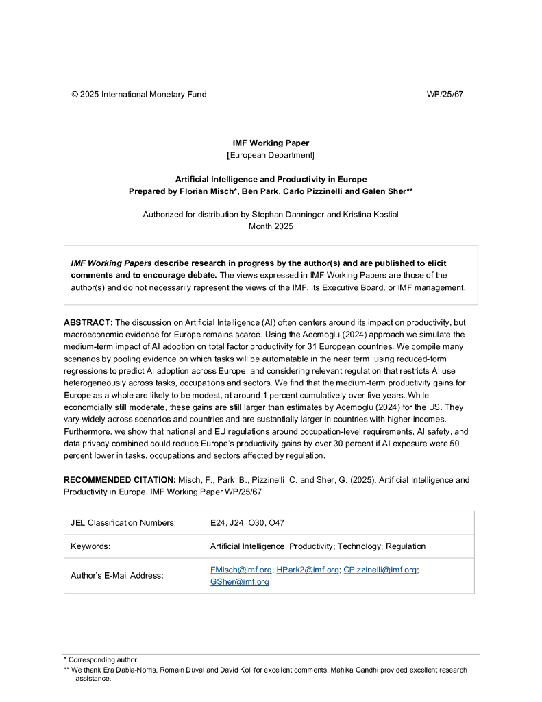 国际货币基金组织:欧洲的人工智能和生产力(英文版).pdf