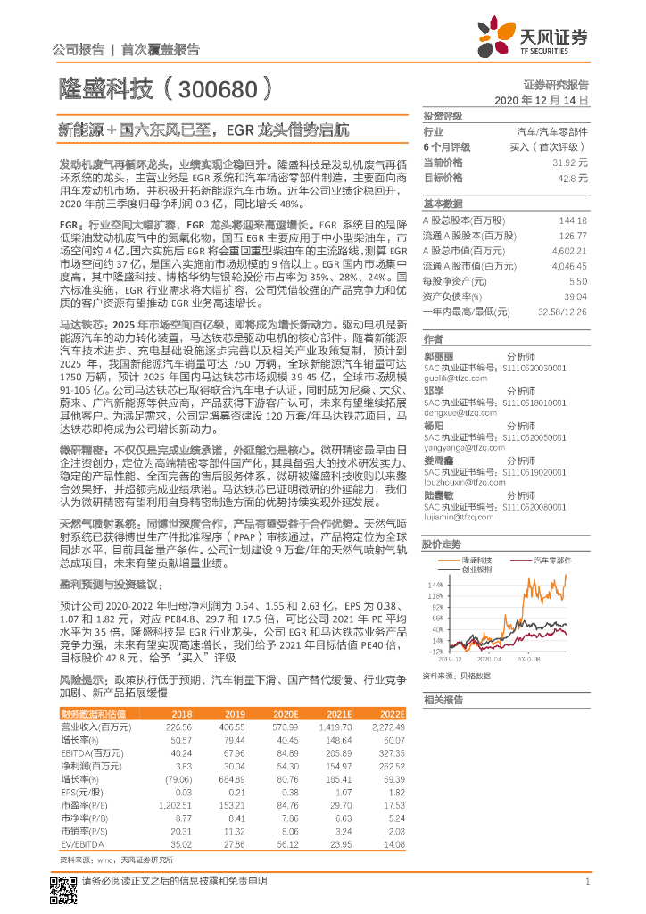 天风证券:隆盛科技(300680)-新能源+国六东风已至,EGR龙头借势启航.pdf