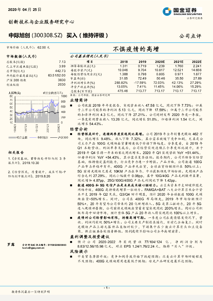 国金证券:中际旭创(300308)-不惧疫情的高增.pdf