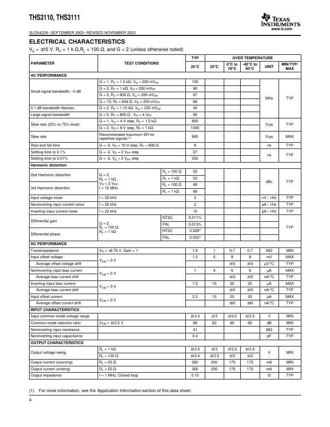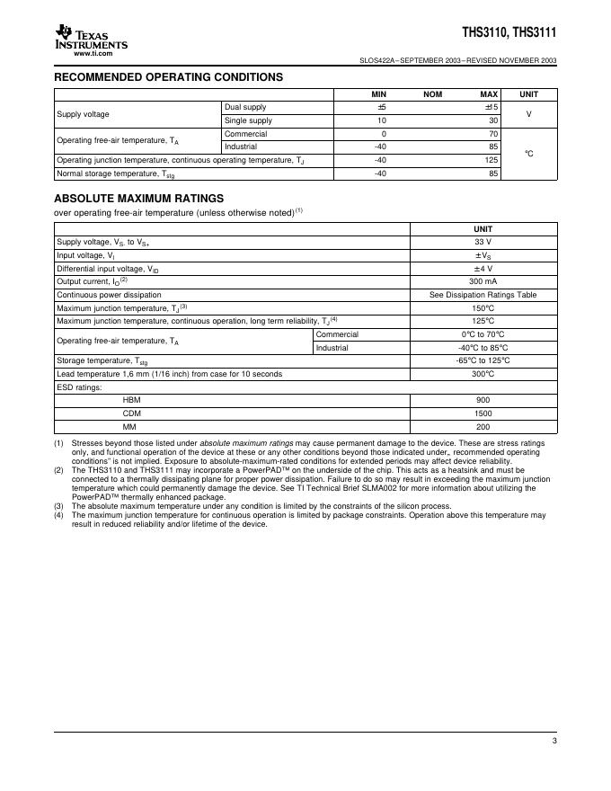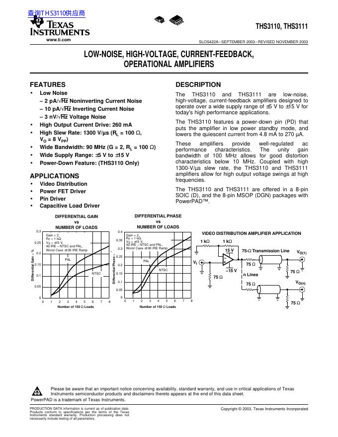 TEXAS INSTRUMENTS THS3110, THS3111 数据手册.pdf
