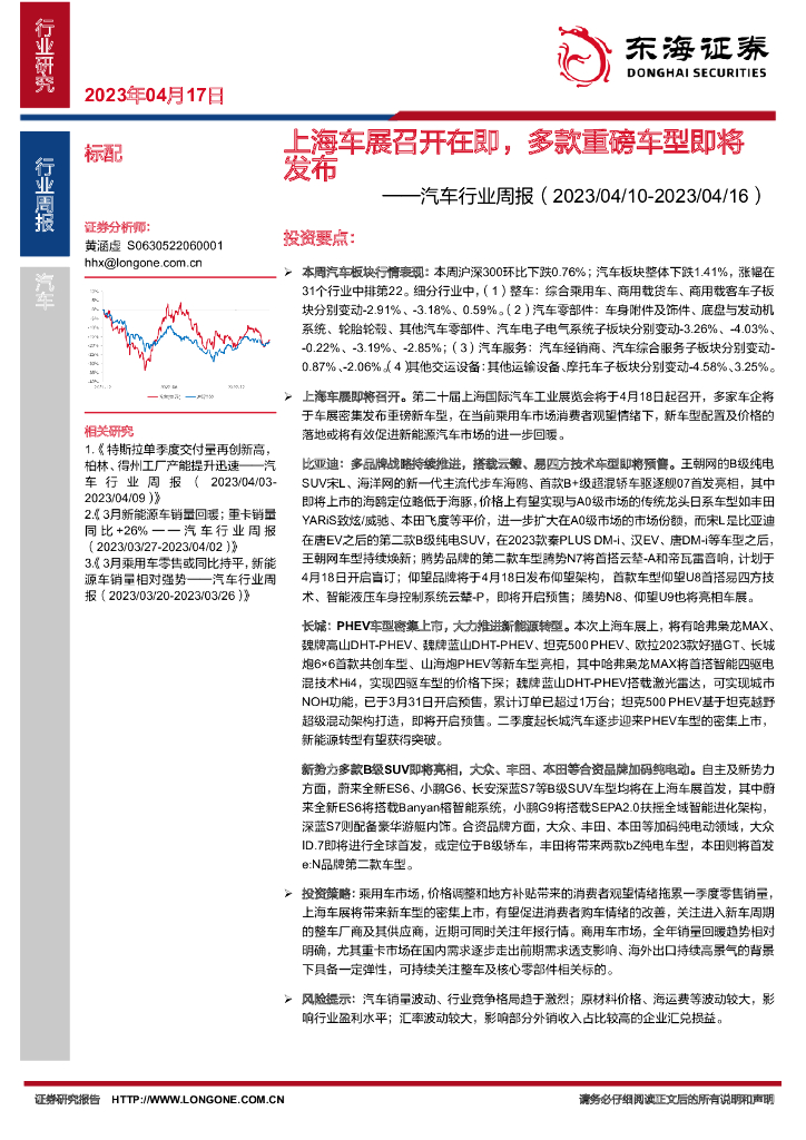 东海证券:汽车行业周报:上海车展召开在即,多款重磅车型即将发布.pdf
