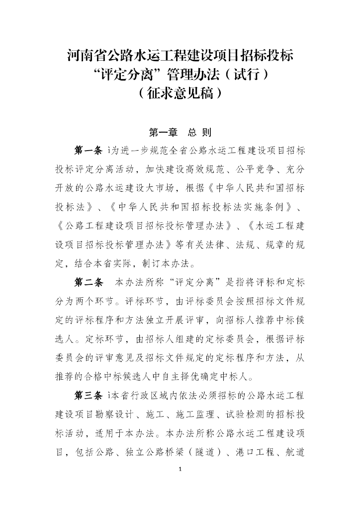 河南省公路水运工程建设项目招标投标“评定分离”管理办法(试行).doc