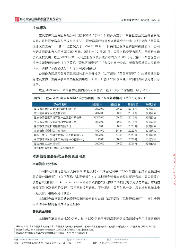 东方金诚:2022年重庆宏烨实业集团有限公司公司债券信用评级报告.pdf