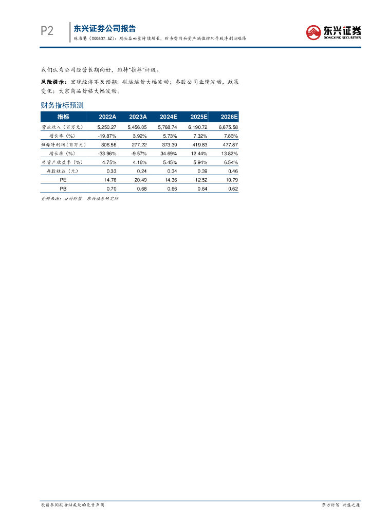 东兴证券:珠海港(000507)-码头吞吐量持续增长,财务费用和资产减值增加导致净利润略降.pdf