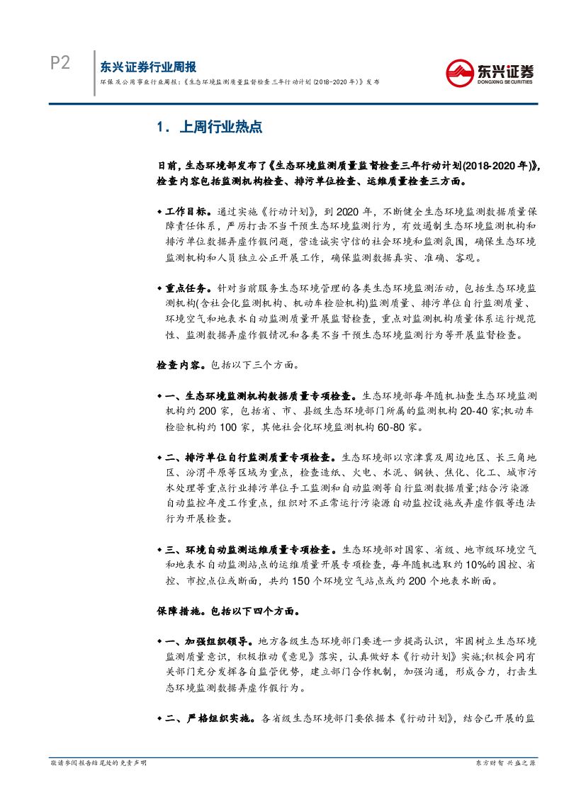 东兴证券:环保及公用事业行业周报:《生态环境监测质量监督检查三年行动计划(2018-2020年)》发布.pdf