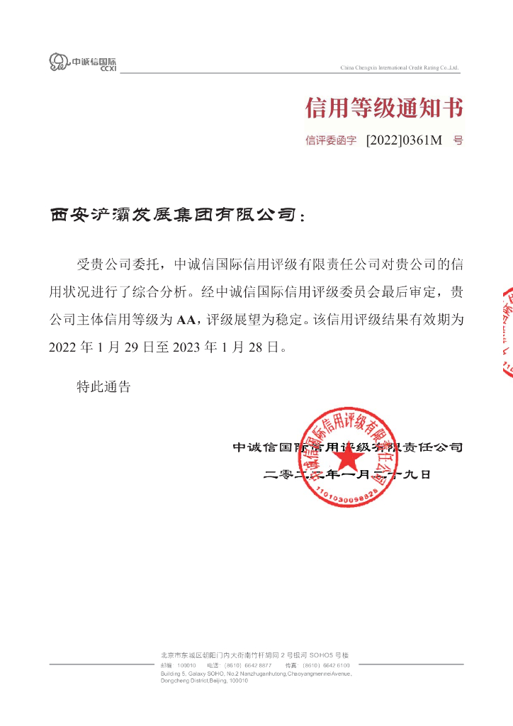中诚信:2022年度西安浐灞发展集团有限公司信用评级报告.pdf