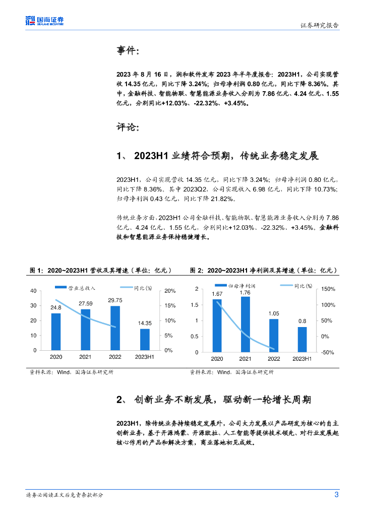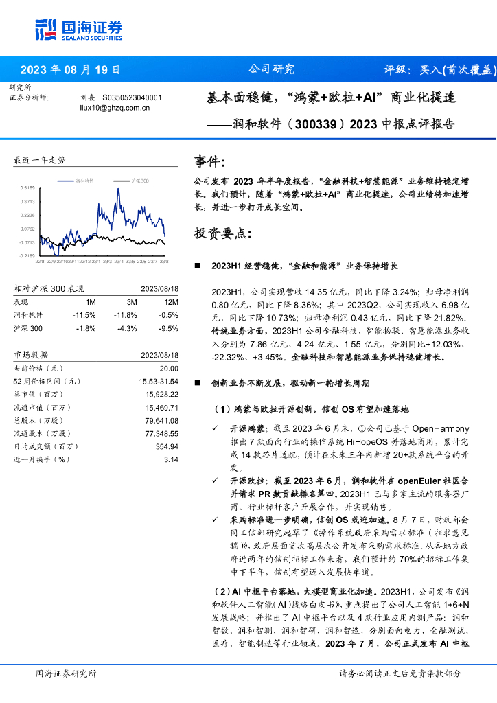 国海证券:润和软件(300339)-2023中报点评报告:基本面稳健,“鸿蒙+欧拉+AI”商业化提速.pdf