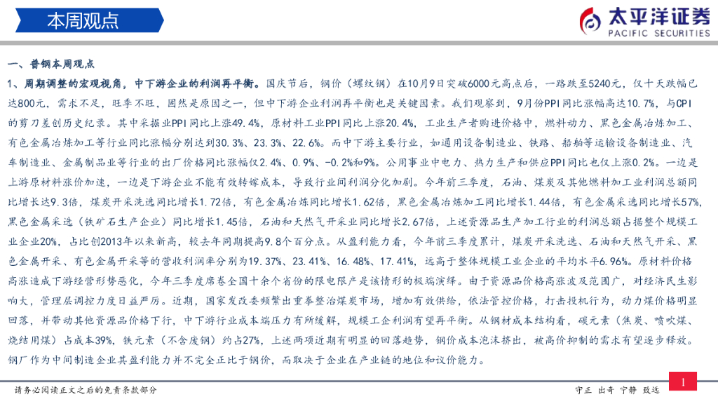 太平洋证券:钢铁周报:太钢不锈Q3拟10派5.86元,本周期货盘面利润在钢材价格下跌中提升.pdf