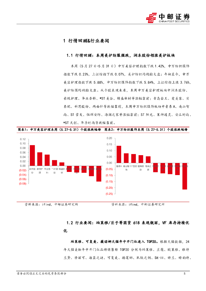 中邮证券:美容护理&纺织服饰周报:珀莱雅/巨子生物等618表现靓丽,VF库存持续优化.pdf