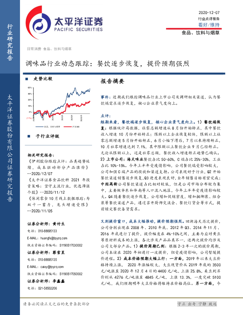 太平洋证券:调味品行业动态跟踪:餐饮逐步恢复,提价预期强烈.pdf