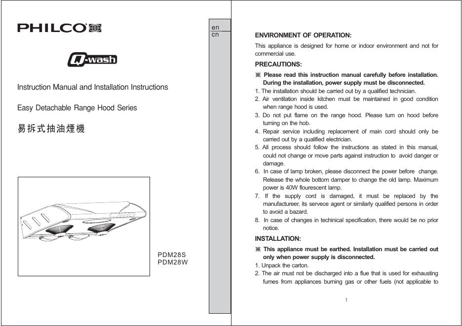 PHILCO PDM28, SPDM28W 抽油烟机 安装手册.pdf