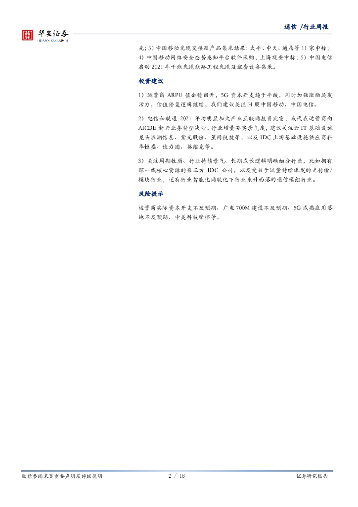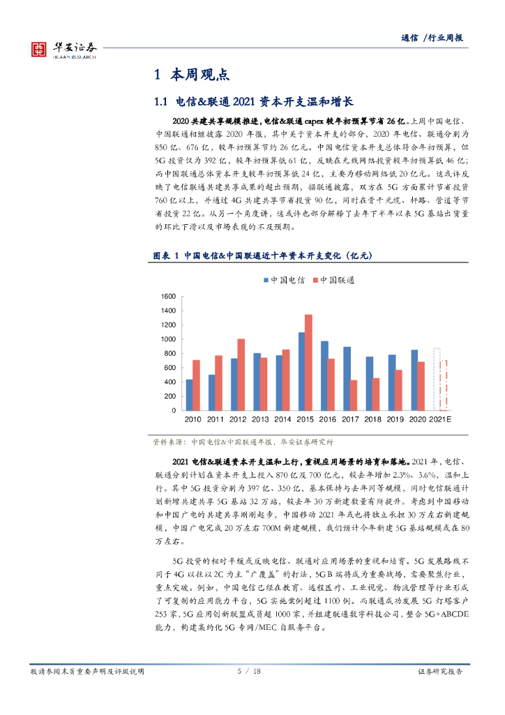 华安证券:通信行业周报:电信联通资本开支拆解:5G投资保持平稳,产业互联网显著增加.pdf