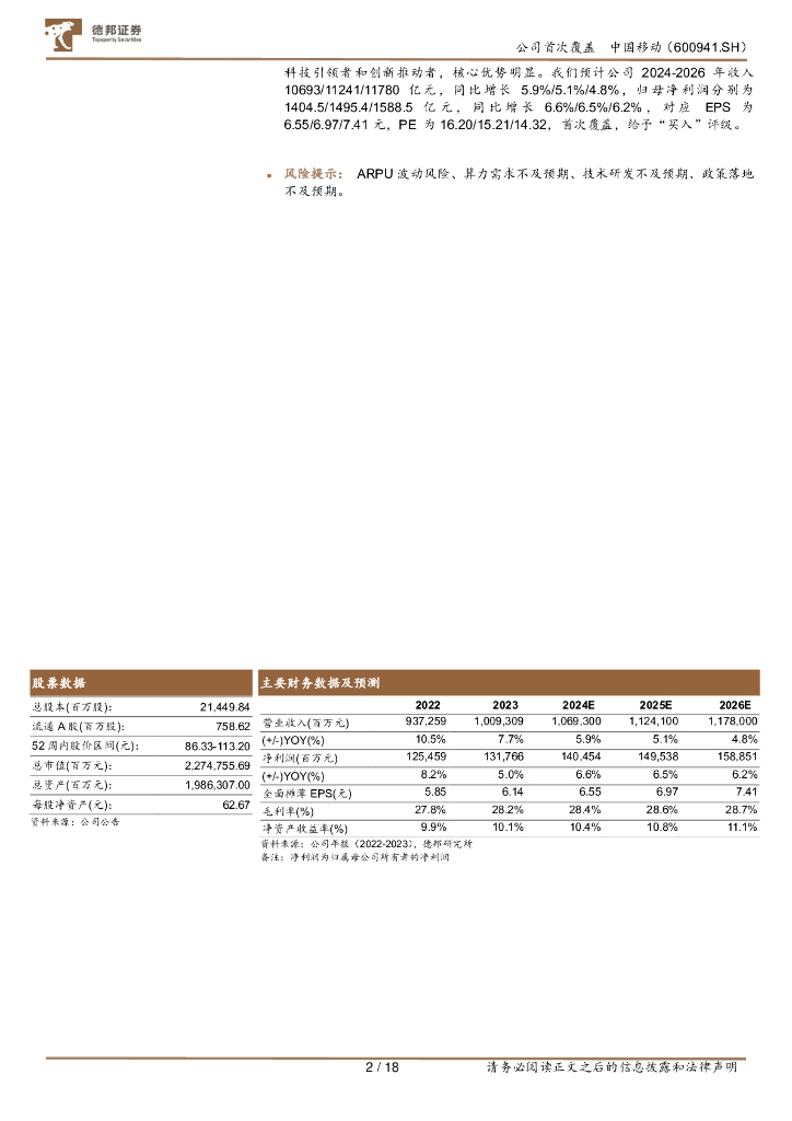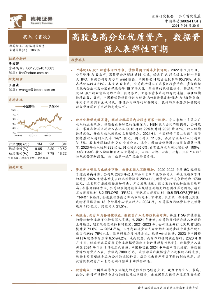 德邦证券:中国移动(600941)-高股息高分红优质资产,数据资源入表弹性可期.pdf