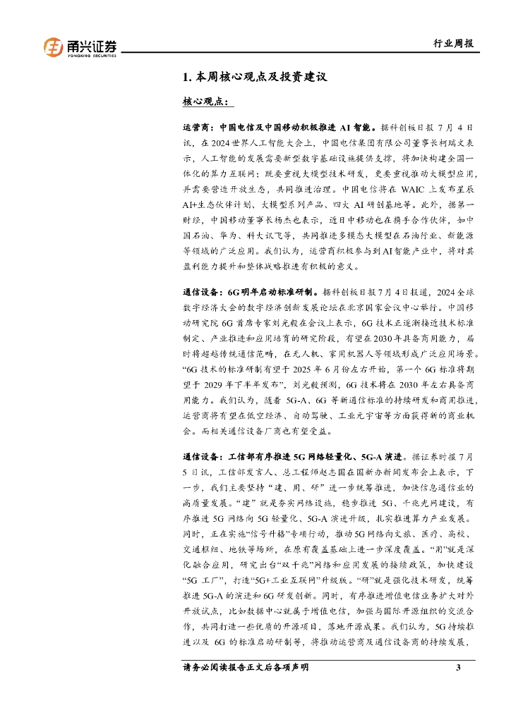 甬兴证券:通信行业周报:运营商积极推进AI智能,6G明年将启动标准研制.pdf