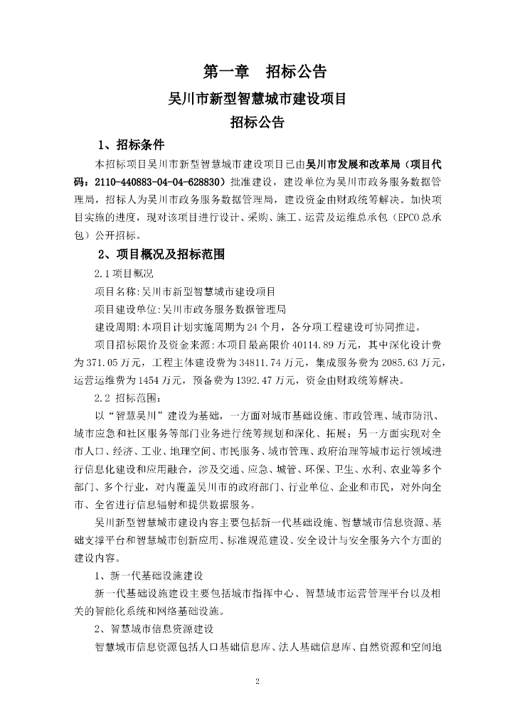 吴川市新型智慧城市建设项目 采购文件-公招-最终定稿.doc
