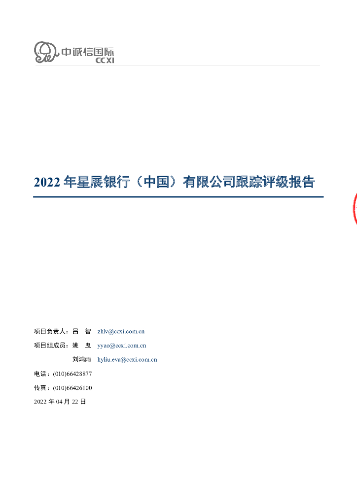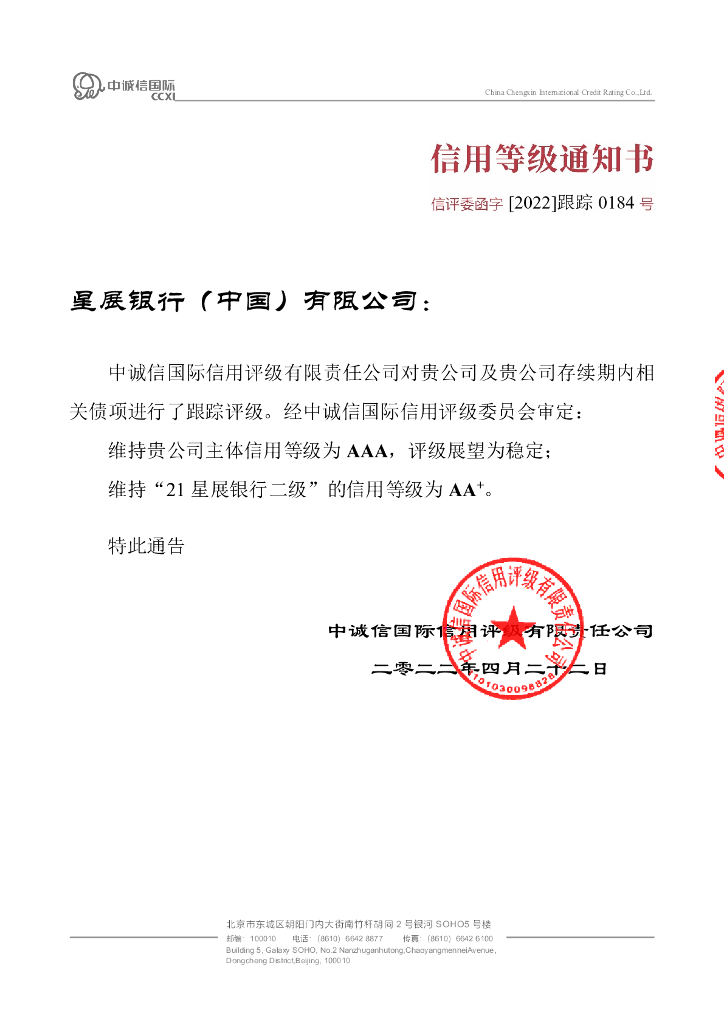 中诚信:2022年星展银行(中国)有限公司跟踪评级报告.pdf