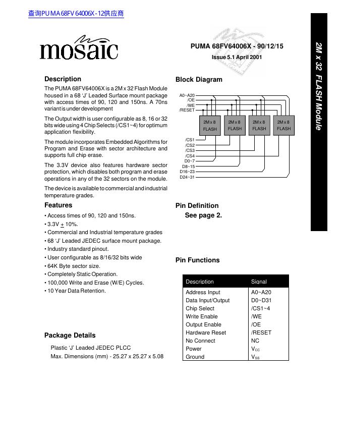 mosaic PUMA 68FV64006X - 90/12/15 数据手册.pdf