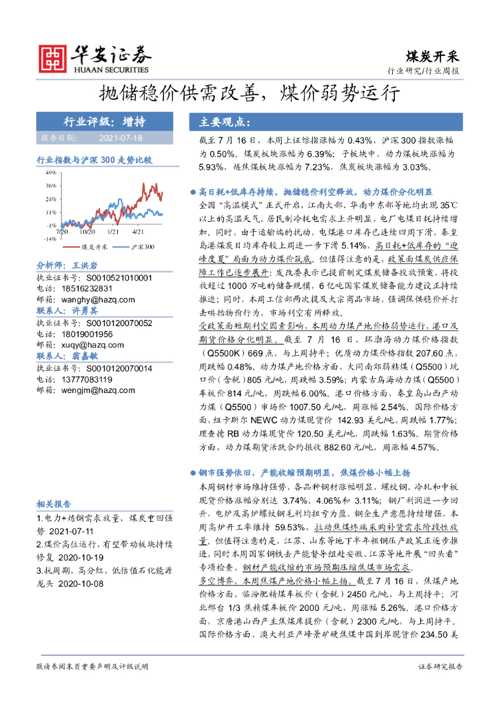 华安证券:煤炭开采行业周报:抛储稳价供需改善,煤价弱势运行.pdf