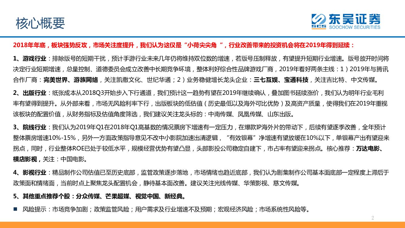 东吴证券:传媒行业2019年年度策略:低估值背景下的攻守兼备,行业改善叠加情绪拐点.pdf
