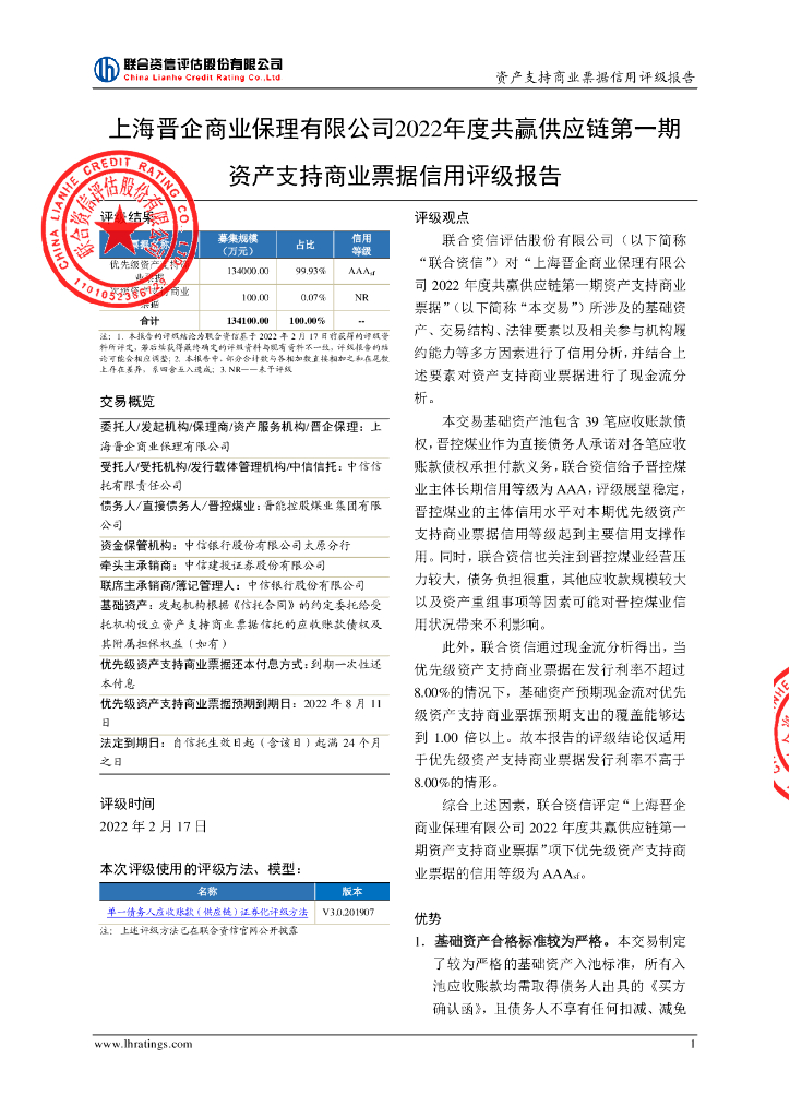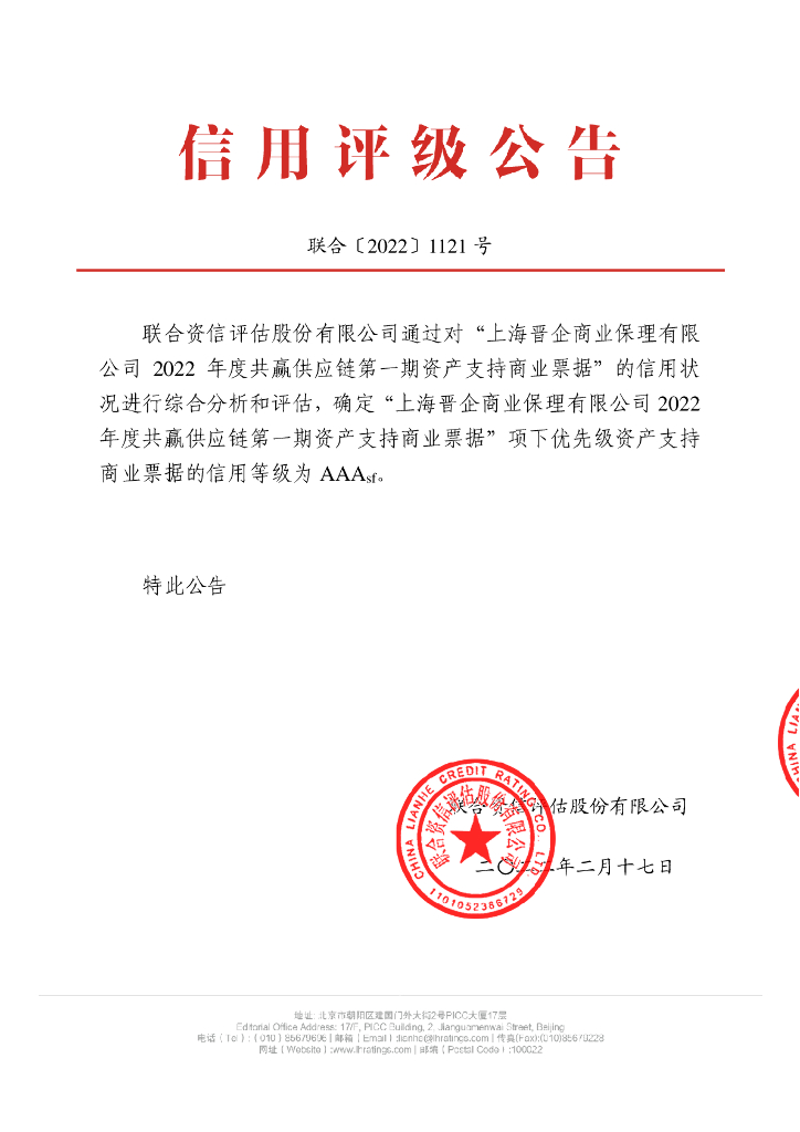 联合资信:上海晋企商业保理有限公司2022年度共赢供应链第一期资产支持商业票据信用评级报告.pdf