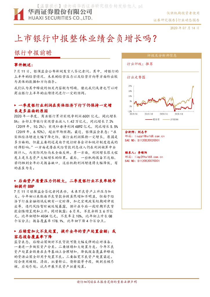 华西证券:银行中报前瞻:上市银行中报整体业绩会负增长吗?.pdf