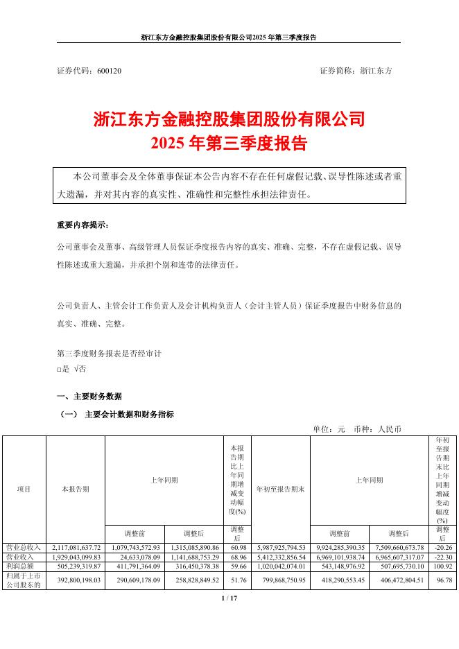 600120-浙江东方:浙江东方金融控股集团股份有限公司2025年第三季度报告.pdf