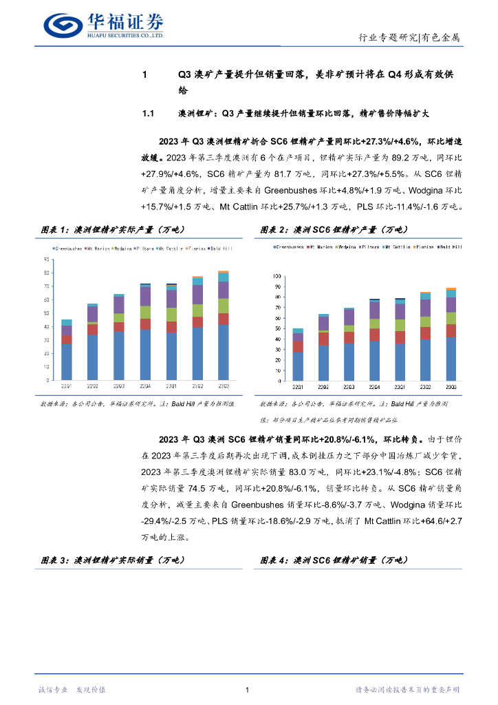 华福证券:锂行业专题研究:2023Q3海外锂矿跟踪:Q3矿价高企带动澳矿销量下降,美非项目将在Q4开始形成有效供给.pdf