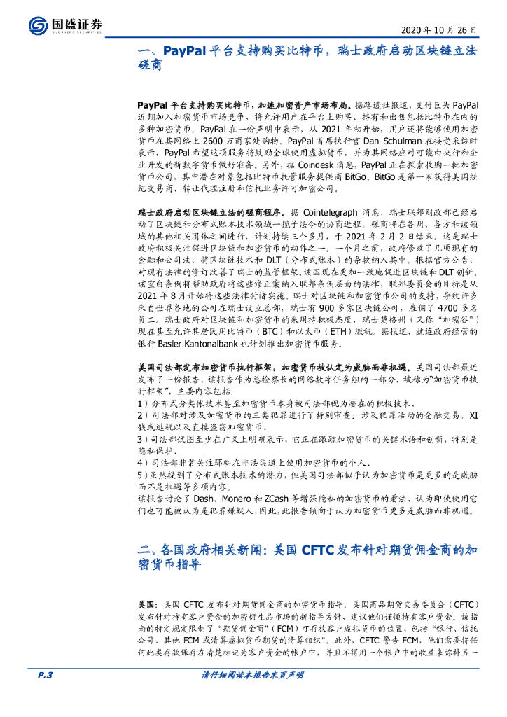 国盛证券:区块链行业周报:PayPal平台支持购买比特币,瑞士政府启动区块链立法磋商.pdf