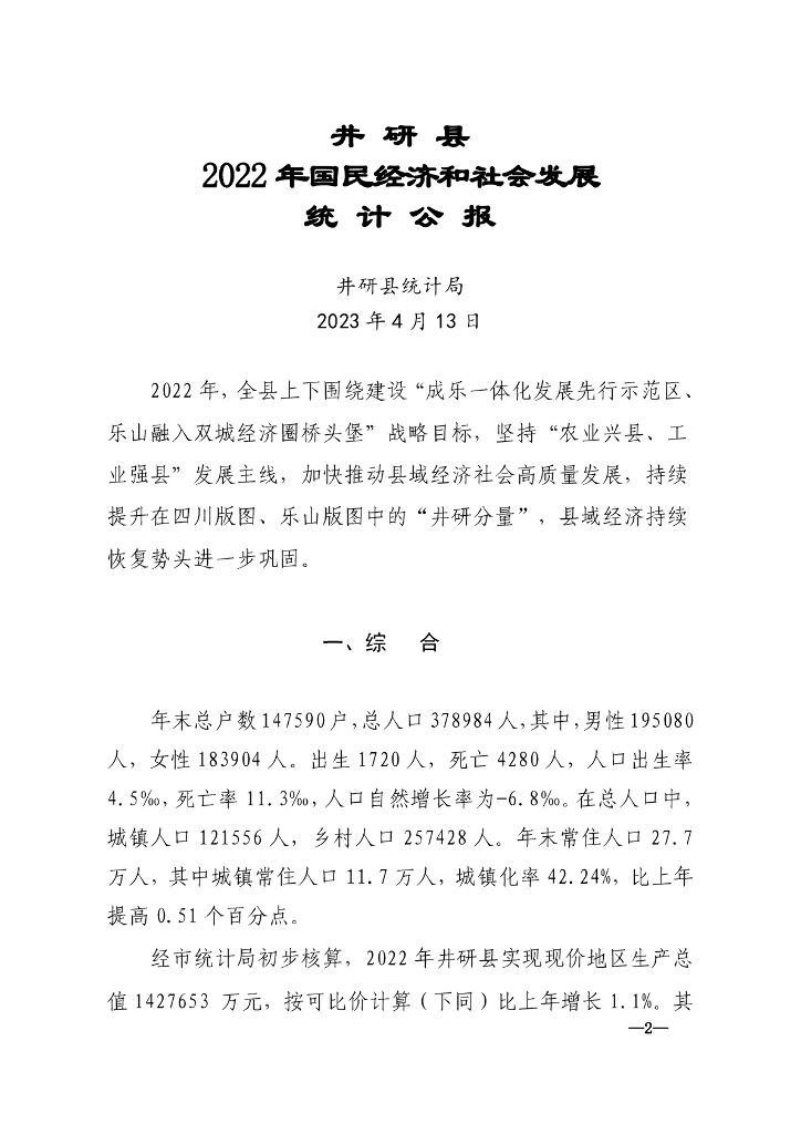 井研县2022年国民经济和社会发展统计公报.pdf
