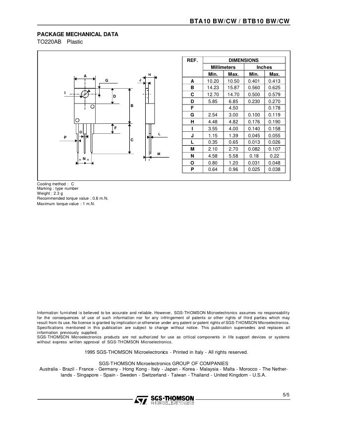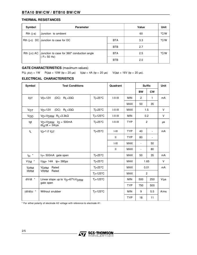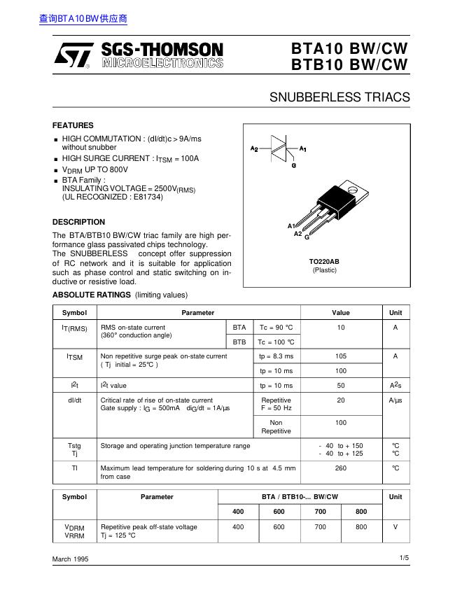 ST BTA10 BW /CW BTB10 BW /CW 数据手册.pdf