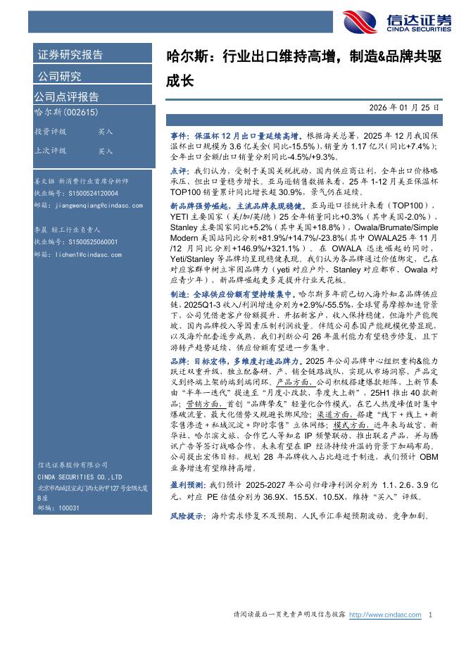 信达证券:哈尔斯:行业出口维持高增,制造&品牌共驱成长.pdf