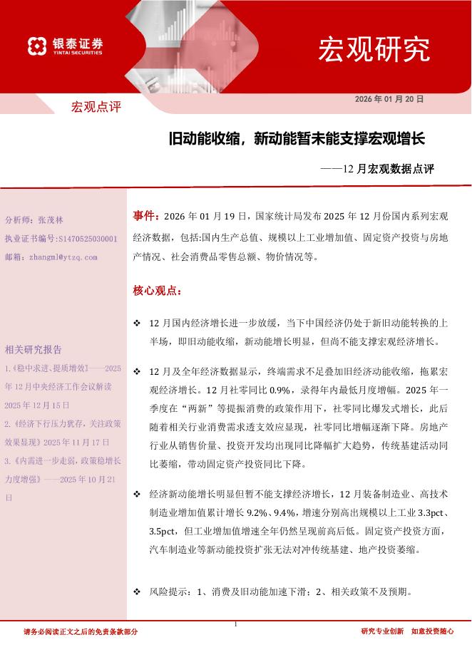 银泰证券:12月宏观数据点评:旧动能收缩,新动能暂未能支撑宏观增长-260130.pdf