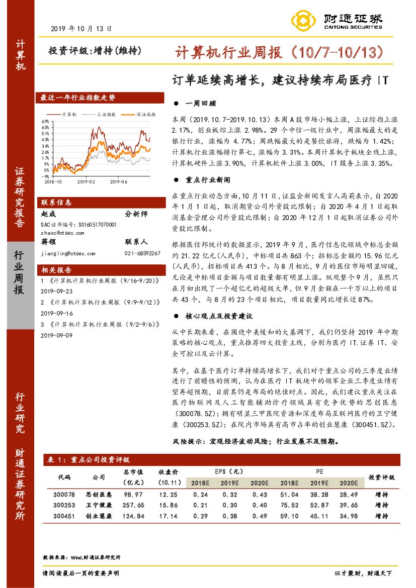财通证券:计算机行业周报:订单延续高增长,建议持续布局医疗IT.pdf