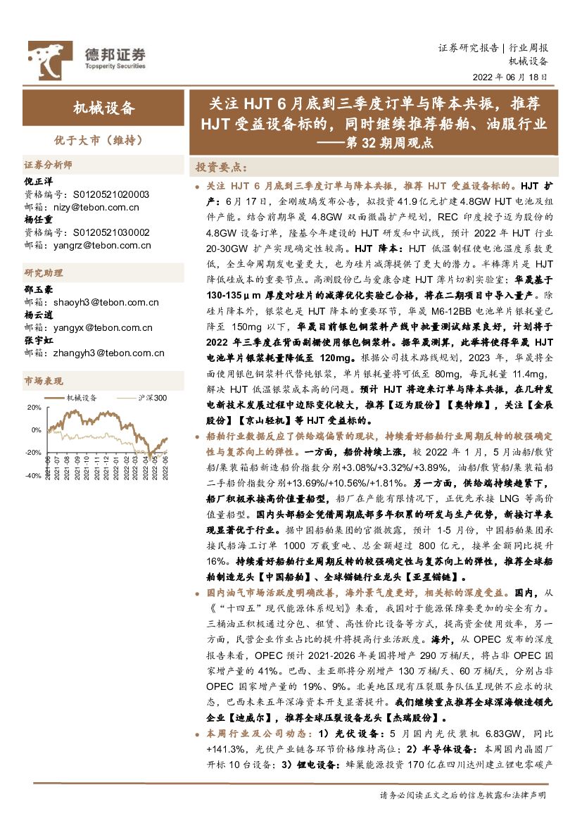 德邦证券:机械设备第32期周观点:关注HJT6月底到三季度订单与降本共振,推荐HJT受益设备标的,同时继续推荐船舶、油服行业.pdf