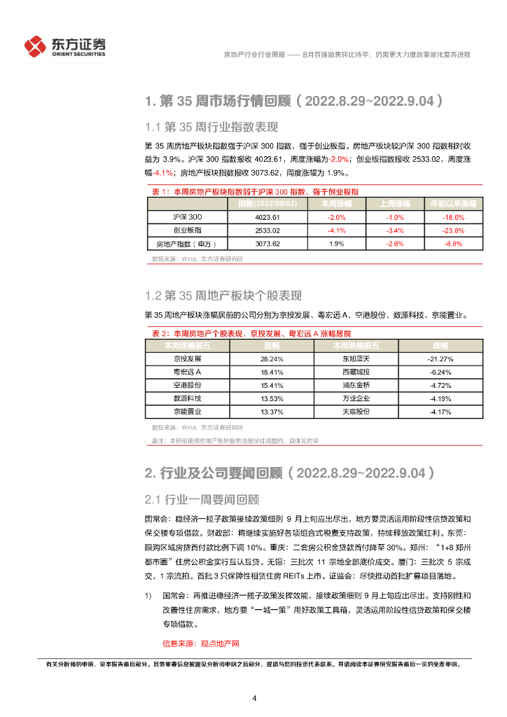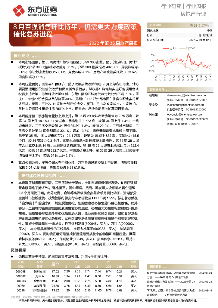 东方证券:房地产行业2022年第35周地产周报:8月百强销售环比持平,仍需更大力度政策催化复苏进程.pdf