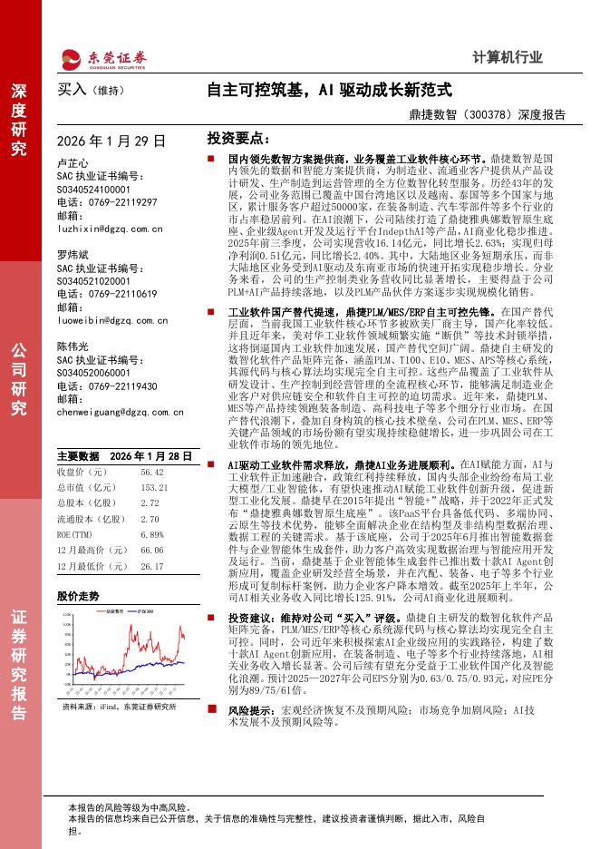东莞证券:鼎捷数智(300378)-深度报告:自主可控筑基,AI驱动成长新范式.pdf