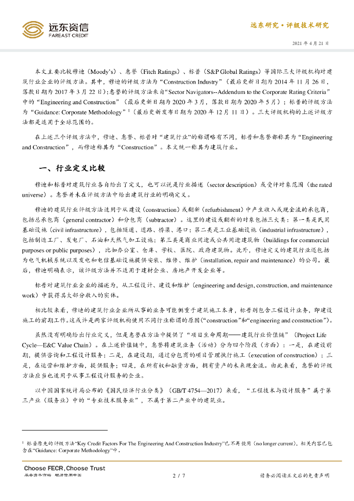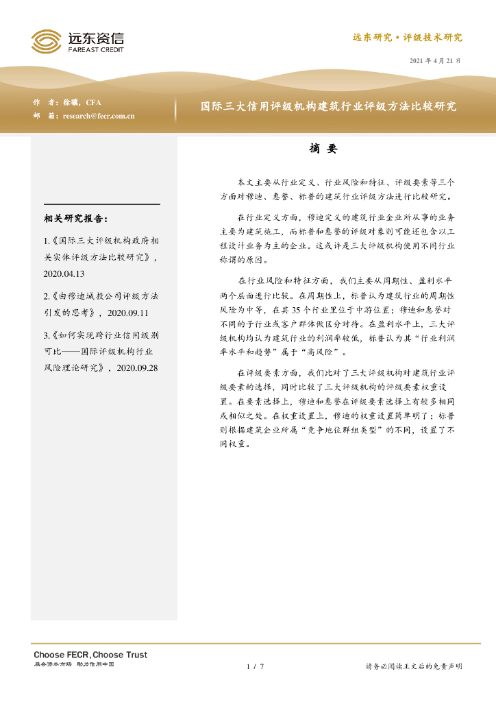 远东资信:国际三大信用评级机构建筑行业评级方法比较研究报告.pdf