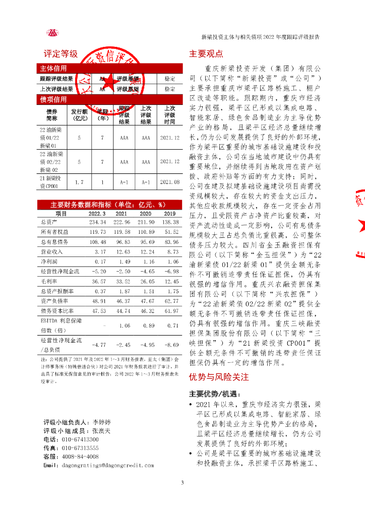 大公:重庆新梁投资开发(集团)有限公司主体与相关债项2022年度跟踪评级报告.pdf