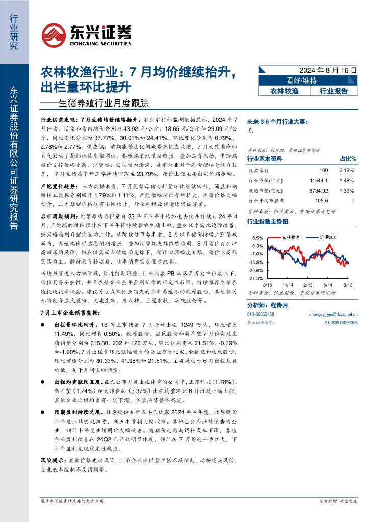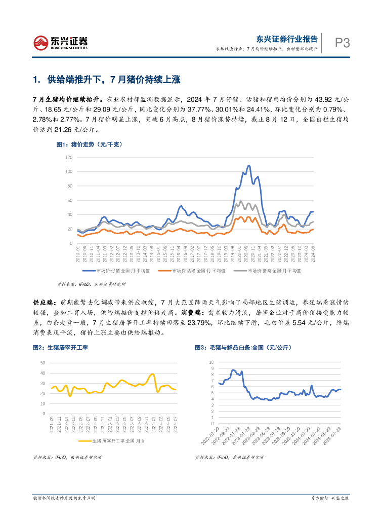 东兴证券:生猪养殖行业月度跟踪:农林牧渔行业:7月均价继续抬升,出栏量环比提升.pdf