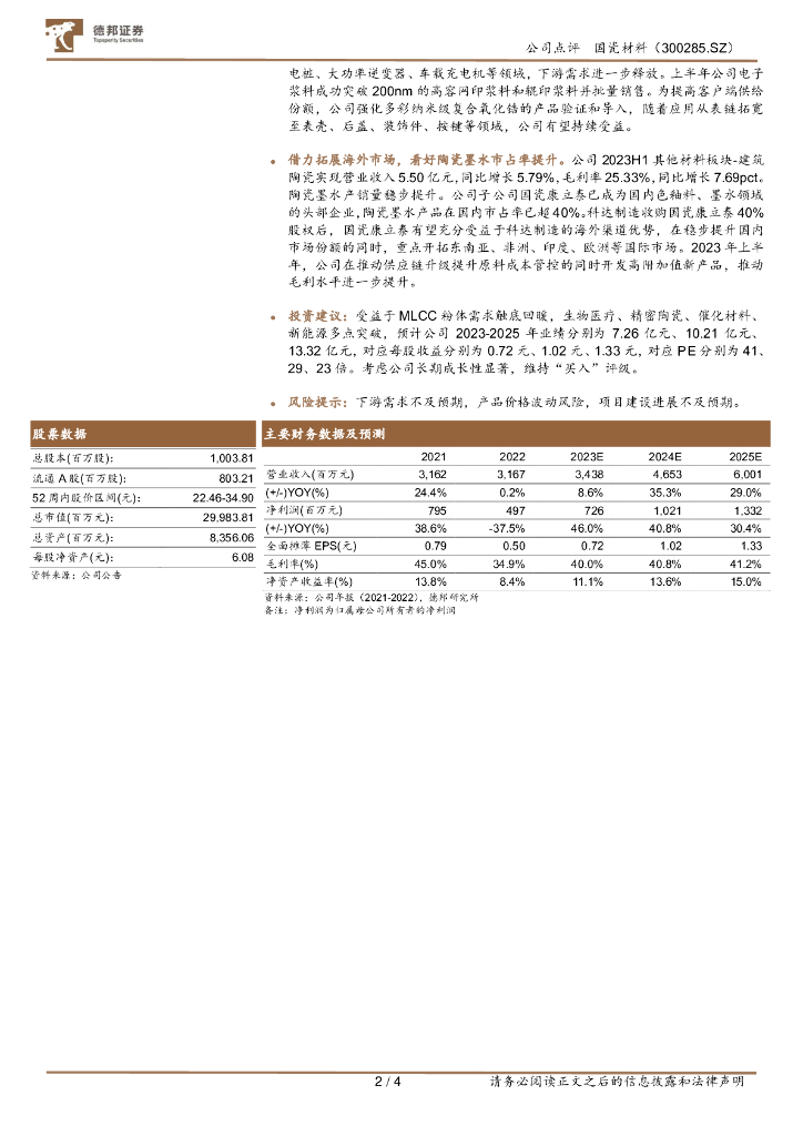 德邦证券:国瓷材料(300285)-业绩逐季改善,长期拐点已现.pdf