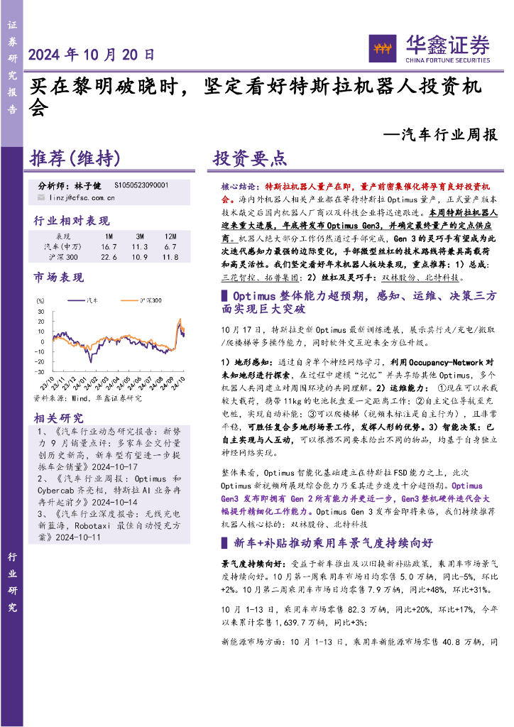 华鑫证券:汽车行业周报:买在黎明破晓时,坚定看好特斯拉机器人投资机会.pdf