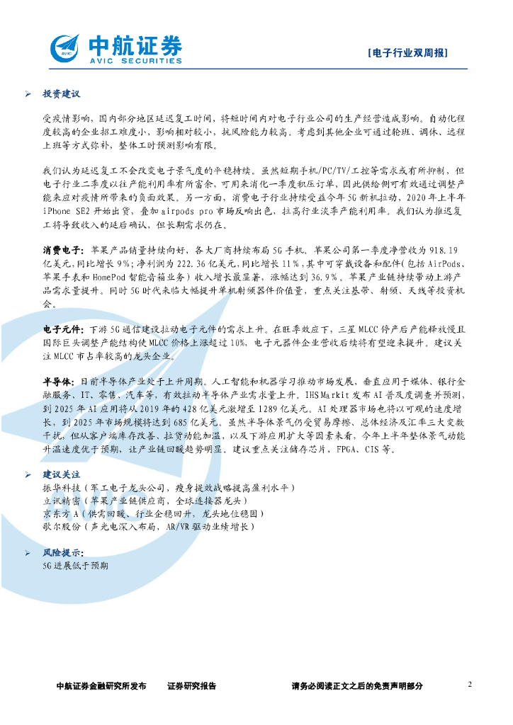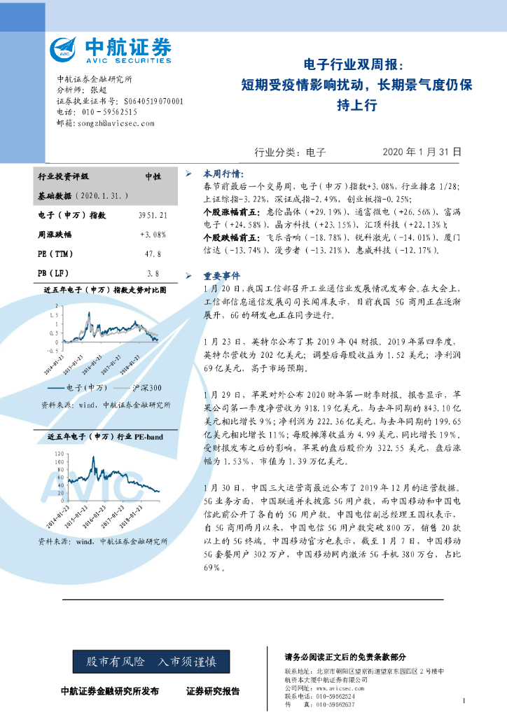 中航证券:电子行业双周报:短期受疫情影响扰动,长期景气度仍保持上行.pdf