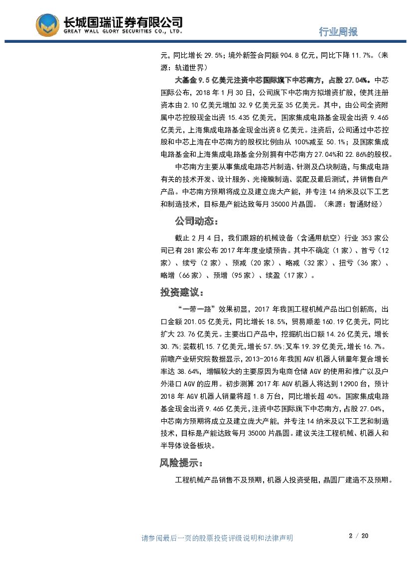 长城国瑞证券:机械设备行业周报2018年第6期:2017年我国工程机械产品出口创新高,大基金9.5亿美元注资中芯南方.pdf