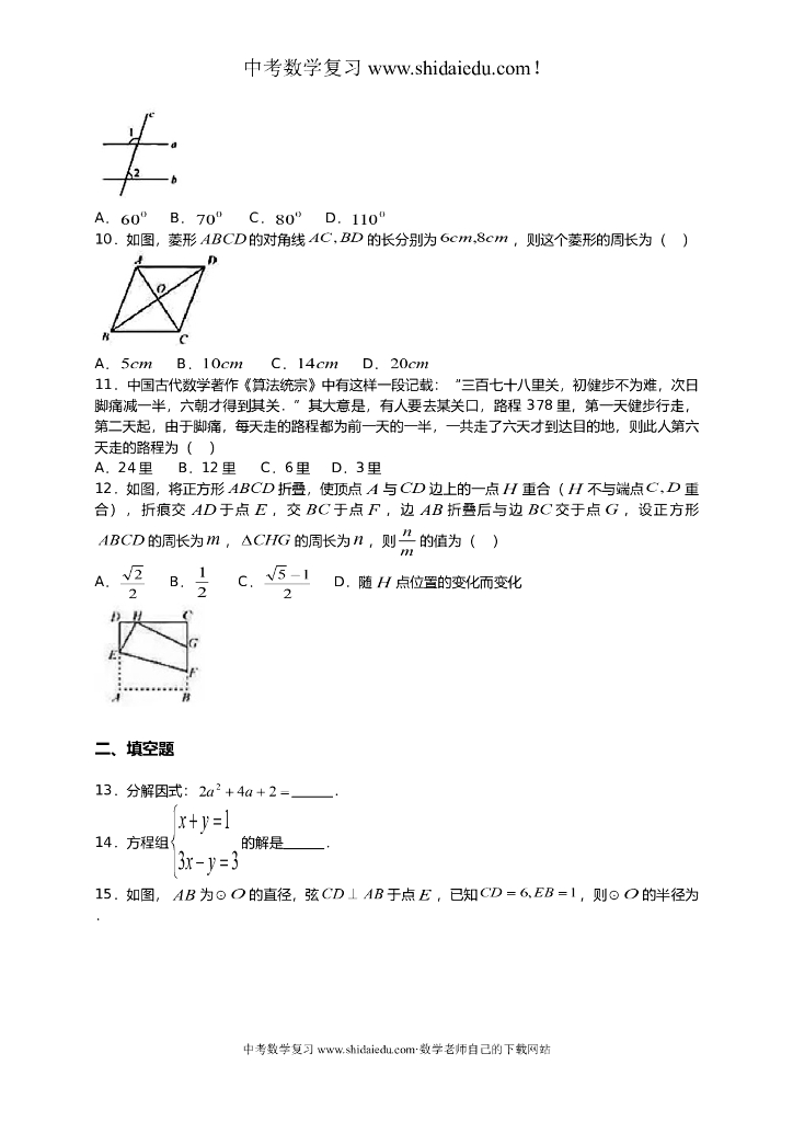 长沙中考数学试题及答案解析.doc